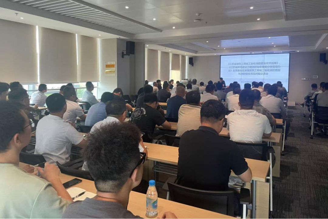 會(huì)議強(qiáng)調(diào)了建筑工程消防質(zhì)量事關(guān)建筑使用安全和社會(huì)公共安全,責(zé)任重大。要求各在建項(xiàng)目要深刻認(rèn)識(shí)消防查驗(yàn)工作的重要性,強(qiáng)化消防工程施工質(zhì)量的把控,切實(shí)提升建筑工程消防質(zhì)量水平。會(huì)議對(duì)近期開始實(shí)施的《江蘇省建筑工程竣工驗(yàn)收消防查驗(yàn)技術(shù)指南》《江蘇省其他建設(shè)工程消防驗(yàn)收備案分類管理辦法》進(jìn)行了宣貫,對(duì)過程質(zhì)量監(jiān)督和消防驗(yàn)收中發(fā)現(xiàn)的常見問題進(jìn)行了解剖分析,系統(tǒng)性講解了消防驗(yàn)收中各專業(yè)方面驗(yàn)收要點(diǎn)。與會(huì)者收獲頗豐。