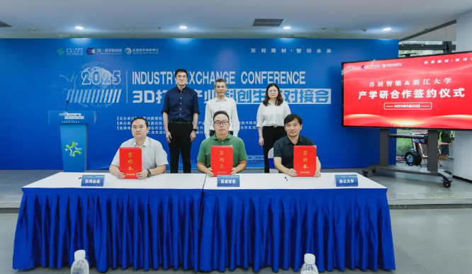 對接會現(xiàn)場,蘇州喜屋智能科技有限公司與浙江大學(xué)進行了產(chǎn)學(xué)研合作簽約。未來,雙方將在技術(shù)聯(lián)合攻關(guān)、成果轉(zhuǎn)化落地等方面展開深度合作,共同為蘇相合作區(qū)3D打印產(chǎn)業(yè)的發(fā)展積勢蓄能。