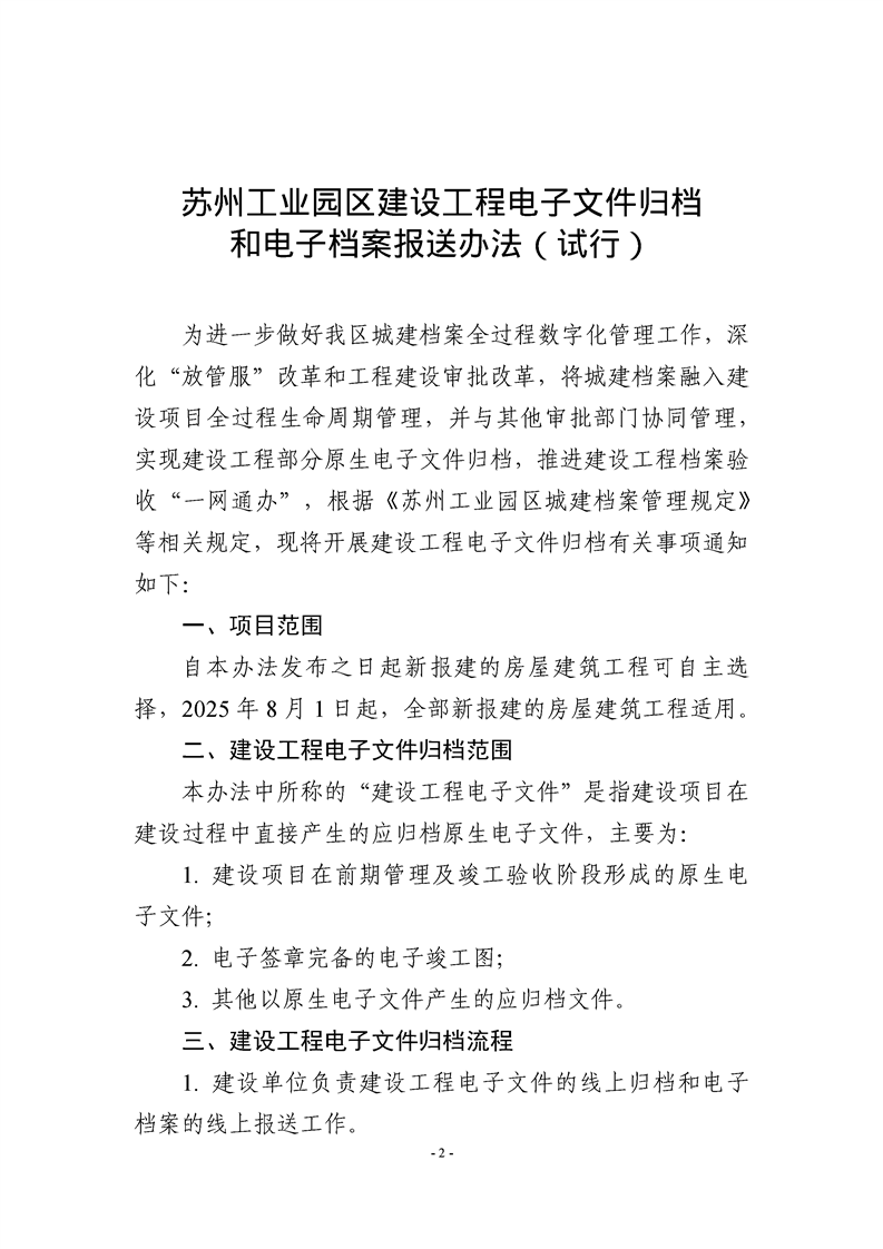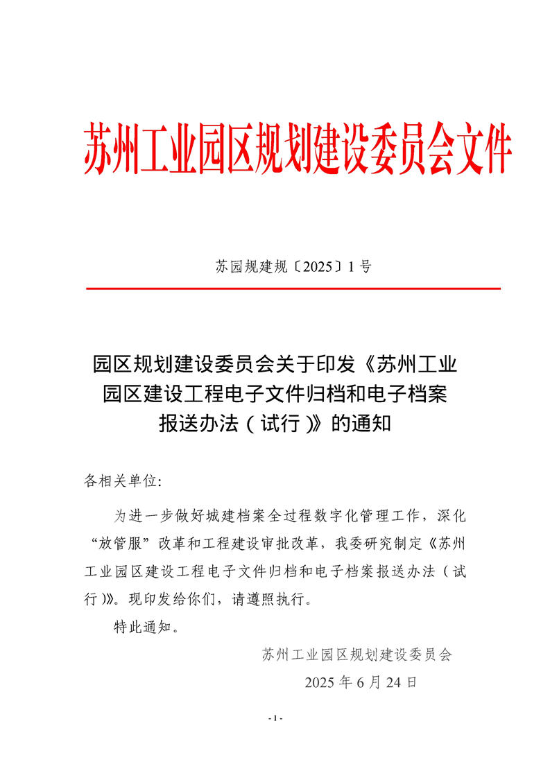 園區規劃建設委員會關于印發《蘇州工業園區建設工程電子文件歸檔和電子檔案報送辦法(試行)》的通知