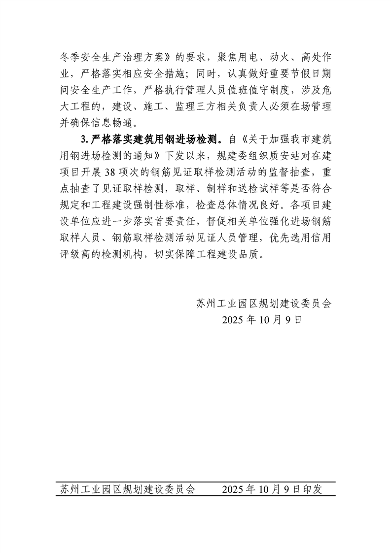 園區規劃建設委員會關于公布2025年第三季度建設工程質量、安全文明、市場行為綜合檢查暨中秋、國慶節前安全專項檢查情況的通知