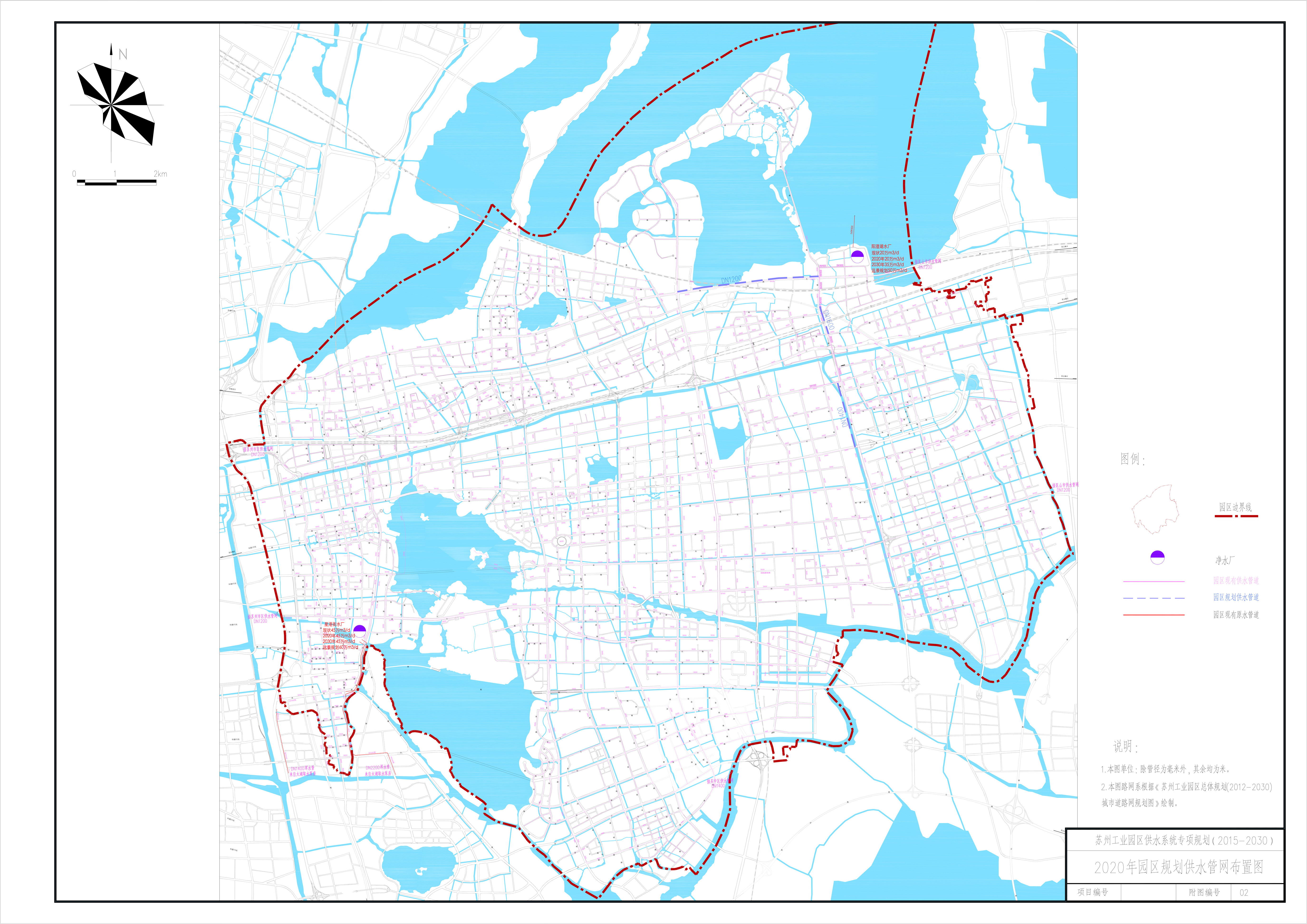 (1)2015年完成星港街水廠深度處理改造工程一階段建設,規模為15萬m3/d;(2)2020年前完成星港街水廠深度處理改造工程二階段建設,規模為30萬m3/d;(3)陽澄湖水廠出廠總管延伸工程:陽澄湖大道DN1200管道總長約3.7km,唯勝路DN1400管道長約1.6km。(4)園區市政道路配套建設工程,3號、5號地鐵沿線及站點供水干管改建工程。