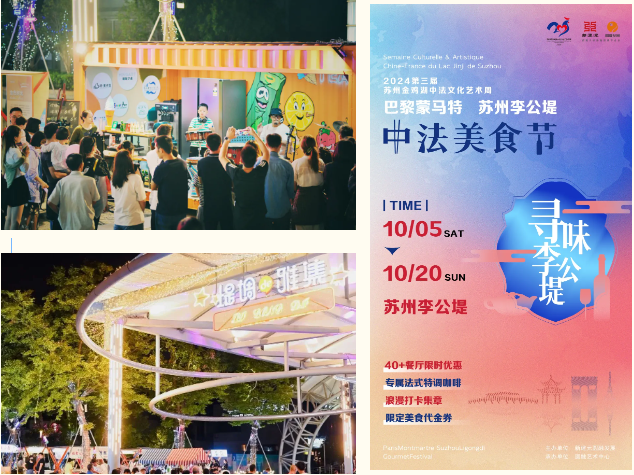中法文化周期間,李公堤文創街區繼續開設“中法風情美學市集”,匯集美食、藝術、潮流元素,展示中法文創內容。同時,李公堤聯袂黑珍珠餐廳、精選特色餐廳等近40家商戶開展了“中法美食節”,呈現不同主題的中西式美食盛宴,營造不同風格的美食文化氛圍。