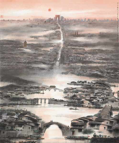 楊明義是蘇州籍畫家,他在80歲高齡創(chuàng)作的水墨作品《今日蘇州人間天堂》在此次展覽中亮相。該作品由近及遠(yuǎn),描繪出蘇州古今不同的時(shí)代風(fēng)貌——既有小橋流水、古塔園林,也有蘇州工業(yè)園區(qū)的繁華盛景,體現(xiàn)了江南水鄉(xiāng)的發(fā)展變遷。“我去過新加坡,也因?yàn)樗囆g(shù)的淵源,對(duì)新加坡有著深厚的感情。藝術(shù)需要交流,通過一次次互動(dòng),相信未來中新文化合作必將結(jié)出更加豐碩的成果。”楊明義說。