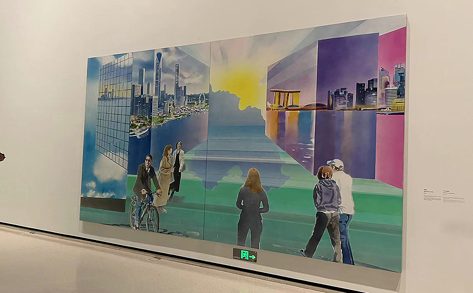 此次展覽中,中國新銳藝術家裴詠梅基于“非凡之城——蘇州工業(yè)園區(qū)”,創(chuàng)作了其《都市未來系列》的最新力作。畫面中,園區(qū)地標建筑東方之門、國金中心與新加坡地標建筑帆船酒店等隔空相望——非凡之城的一座座地標拔地而起,撐起了現(xiàn)代之城的城市筋骨和靚麗風景。行走的路人,象征著優(yōu)秀人才在園區(qū)這片創(chuàng)新創(chuàng)業(yè)熱土施展才華、實現(xiàn)夢想。