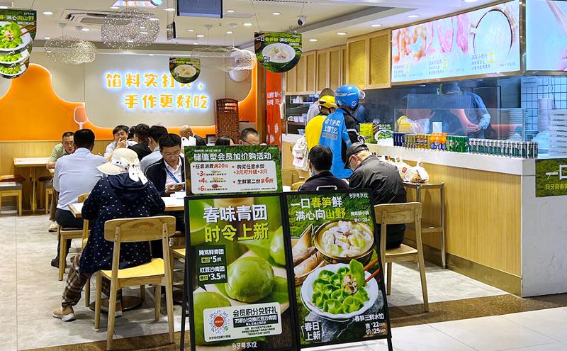 “我們對(duì)品質(zhì)的要求非常高,原料每天以不同色帶標(biāo)準(zhǔn)配送,凌晨4點(diǎn)前到貨,現(xiàn)包現(xiàn)銷,日配日清,當(dāng)日用不完的全部報(bào)廢處理。”鑫震源陽澄湖鄰里中心店店長楊兆船介紹,除了以品質(zhì)和口碑吸引食客,鑫震源也引入蘇州不時(shí)不食的精致餐飲格調(diào),結(jié)合年輕客群需求大膽創(chuàng)新,推出季節(jié)限定款。“春季我們推出了綠色主題的薺菜新品,夏季的麻辣小龍蝦,秋季有蟹粉,冬季推出牛肉款,受歡迎度都非常高!”