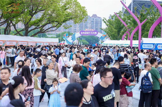 賽事現場,“華夏同心集”搭建起民族多彩文化交流的平臺,集市包含園區公共文化中心“FUN承非遺”金雞湖龍船市非遺文化體驗展位、688藝術潮流公園市集、“龍舟有好市”民族美食市集;市集活動整體涵蓋非遺、文創、音樂書籍、美食等展商。金雞湖端午龍舟賽作為集民俗文化、競技賽事、文旅消費于一體的綜合性活動,在文化傳承與創新融合的推動下,打造多樣化“龍舟經濟”消費新場景。