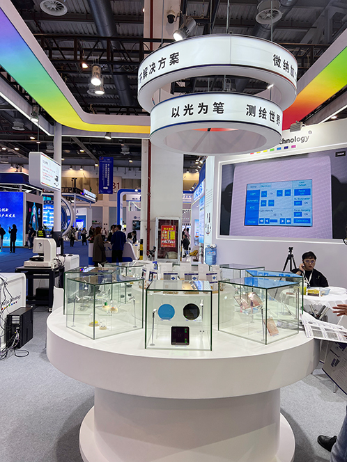無(wú)掩模版紫外光刻機(jī)、主動(dòng)對(duì)焦模組、晶圓檢測(cè)顯微鏡、3D顯微鏡……在托托科技(蘇州)有限公司的展臺(tái)上,一件件光學(xué)設(shè)備兼具顏值和科技含金量。作為一家以光學(xué)檢測(cè)及光學(xué)加工為核心的高端裝備制造企業(yè),托托科技聚焦行業(yè)需求,開(kāi)發(fā)了一系列功能強(qiáng)大的光學(xué)設(shè)備。