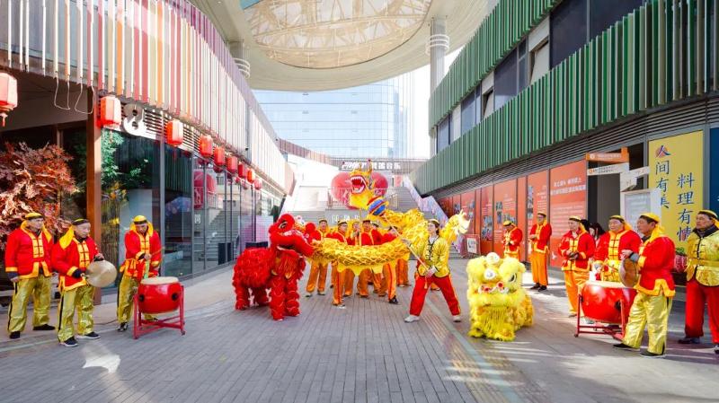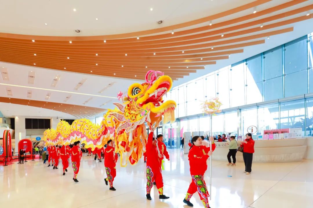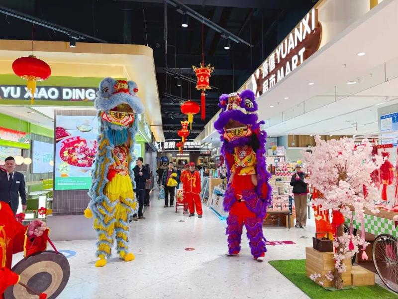 一群憨態可掬的小獅子在梅花樁上輕盈跳躍,時而翻滾,時而嬉戲,還俏皮地從口中“吐”出春聯,為市民游客送上滿滿的新春祝福。這場精彩絕倫的龍獅表演,贏得了現場觀眾的陣陣掌聲,整個商場洋溢著喜慶。