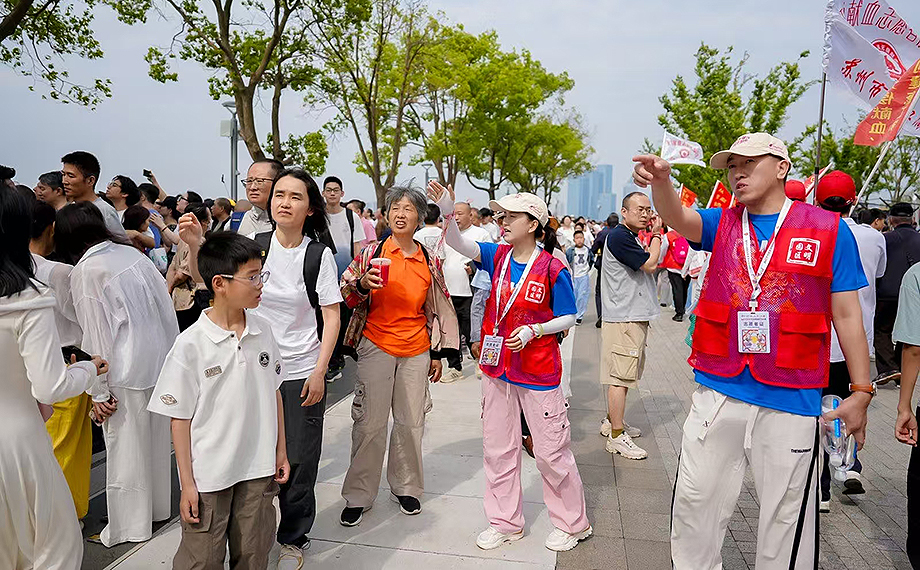 “體驗區(qū)請往這邊走!”在非遺科技龍舟體驗區(qū),網(wǎng)格長楊章繹正熱情地為游客指引方向。“前期我們進(jìn)行了踩點(diǎn)、人員安排等,今天我六點(diǎn)半就到現(xiàn)場待命了。這次我主要負(fù)責(zé)非遺科技體驗區(qū)游客問詢、觀賽引導(dǎo)及秩序維護(hù)等工作。”楊章繹是來自園區(qū)企業(yè)江南嘉捷的員工,也是一名資深志愿者。自金雞湖端午龍舟賽首次招募志愿者開始,他就一直報名參與賽事的志愿服務(wù)工作。“能夠持續(xù)為園區(qū)大型賽事貢獻(xiàn)自己的力量,我覺得很快樂也很自豪。我們要通過完善的服務(wù),展現(xiàn)蘇州和園區(qū)的城市溫度。”