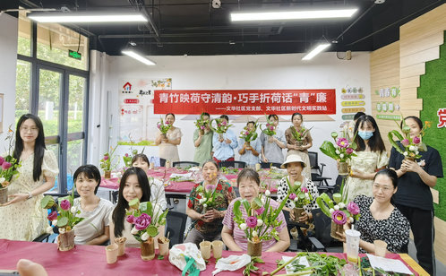 為進(jìn)一步弘揚(yáng)廉潔文化,營造風(fēng)清氣正的社區(qū)氛圍,近日,文華社區(qū)組織轄區(qū)青年居民開展了“青竹映荷守清韻,巧手折荷話‘青’廉”主題插花活動。在園藝?yán)蠋煹闹笇?dǎo)下,大家以竹為器、以荷為材,學(xué)習(xí)荷花的多種折法,以荷寄情,暢談對廉潔寓意的理解,不一會兒,一件件融合了“竹之節(jié)”與“荷之潔”的插花作品便呈現(xiàn)在眼前,既有自然之美,又傳遞出了廉潔自律的價(jià)值追求。以竹喻廉、以荷喻潔,活動不僅提升了青年的審美與動手能力,更讓廉潔理念以生動可感的方式深入人心,讓廉潔文化從“文字”走向“生活”,從“說教”變?yōu)椤肮睬椤保瑸樯鐓^(qū)精神文明建設(shè)注入了清新活力。