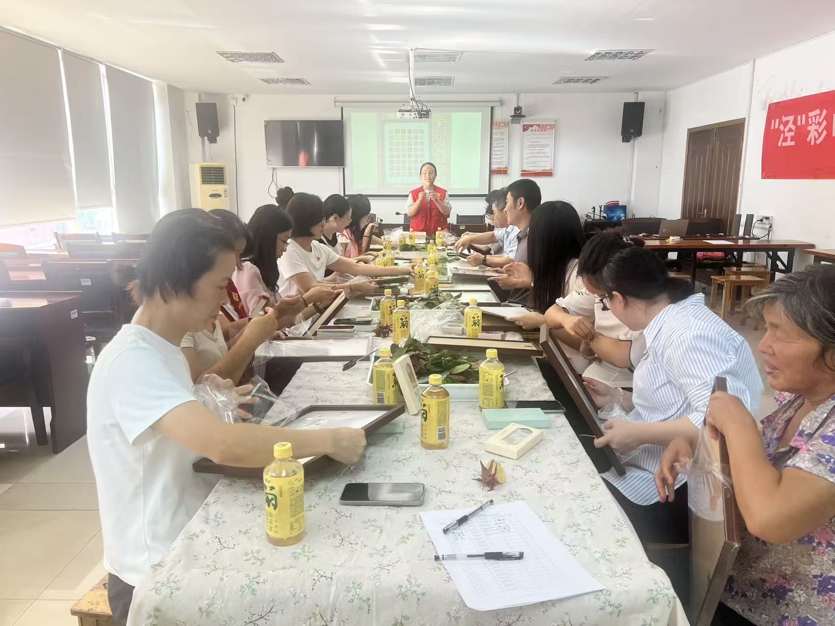 活動伊始,黨員志愿者及社區工作者們以“寒露知多少”為主題,為在場居民帶來了生動詳實的寒露節氣知識講解,居民們聽得津津有味,不時提出問題。現場還設置了緊張又有趣的“二十四節氣有獎問答”環節,大家積極搶答,氣氛十分熱烈。在隨后的樹葉剪貼畫制作中,又將活動氛圍推向高潮。大家圍坐一團,按照步驟充分發揮想象與創意,經過一番精心制作,一幅幅特色樹葉剪貼畫相繼完成,大家紛紛展示自己的作品,分享創作心得。