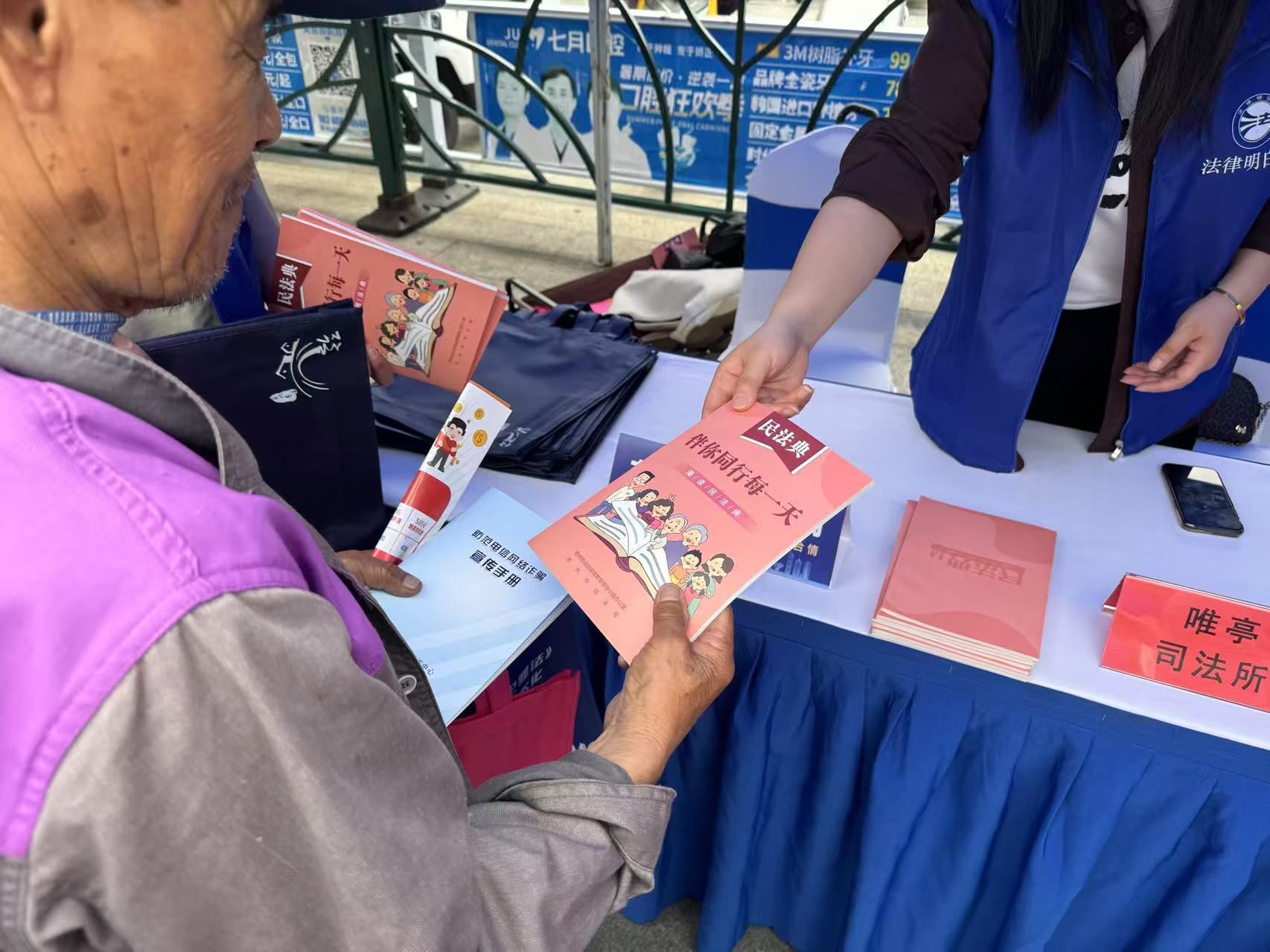 充分利用轄區電子屏、宣傳欄等載體,在商業街區等人流量較大的場所滾動播放民法典宣傳片、普法標語等;在社區廣場設置法治攤位,通過發放宣傳單、張貼海報、法律咨詢等方式開展集中宣傳,向居民解讀消費維權、金融詐騙等與生活密切相關的民法典知識;依托微信公眾號等新媒體平臺,定期推送民法典解讀、典型案例等內容,形成“線上+線下”立體化宣傳矩陣,確保民法典宣傳“抬頭可見、駐足可學、線上可查”。活動期間,累計發放民法典宣傳冊24500余冊、宣傳品2700余份,解答群眾咨詢840余人次。