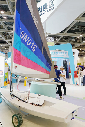 Jinji Lake Sailing Club showcased a real sailboat to help the visitors know more about the sport of sailing and vessels used in sailing races.