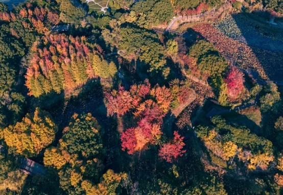 The Red Maple Grove, as the largest maple-viewing spot in SIP, is home to over 500 maple trees that are gradually turning fiery red.