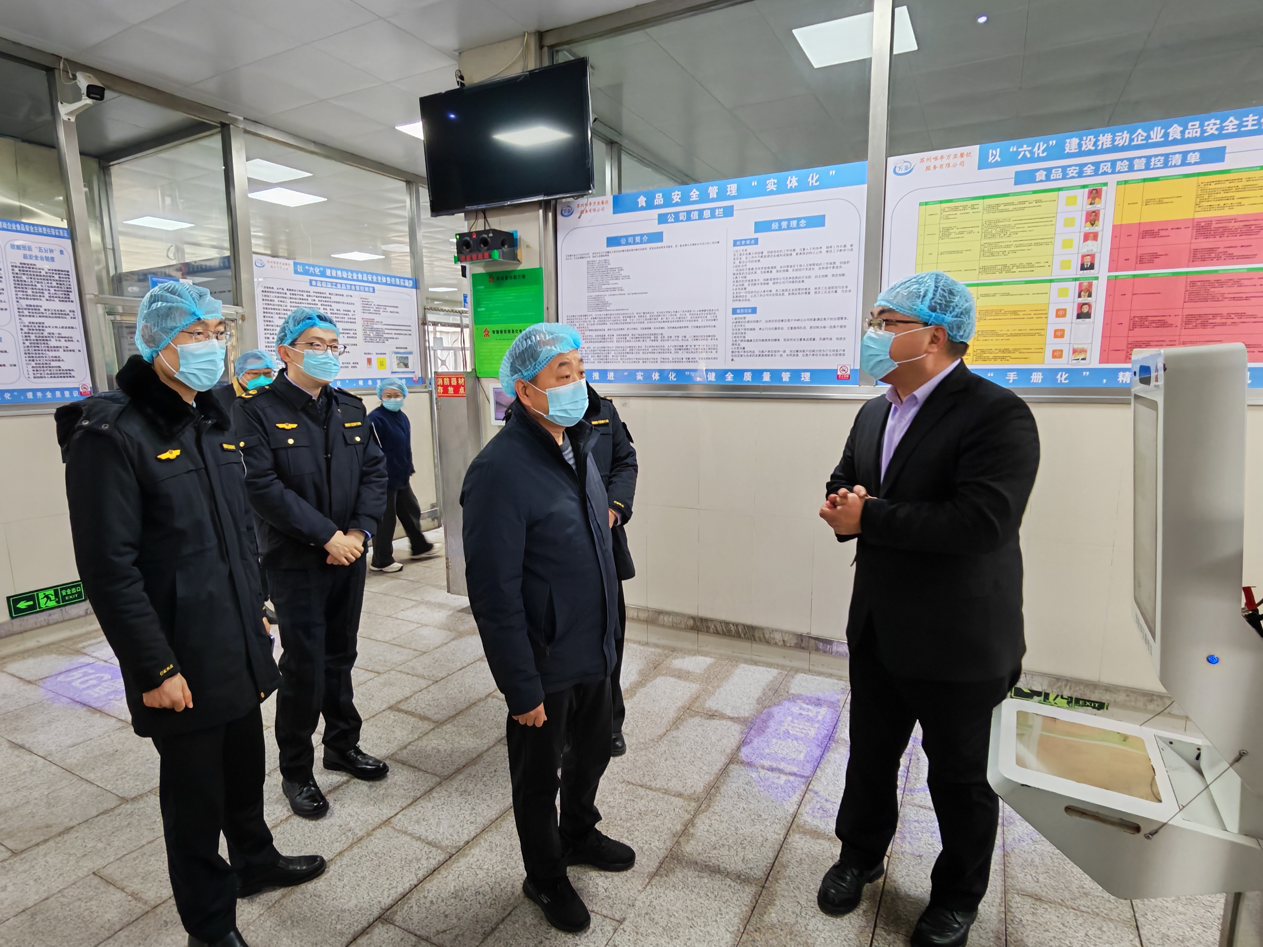 嚴把集配供應鏈關口,檢查組最后來到集配單位唯亭萬亞餐飲公司,深入現場,查看食品安全管理體系運行情況,重點檢查供應商審核、進貨查驗、檢驗檢測、配送清潔及追溯系統建設等內容。要求集配單位健全內控體系,做好食品安全“守門員”,從源頭嚴控食品安全風險。